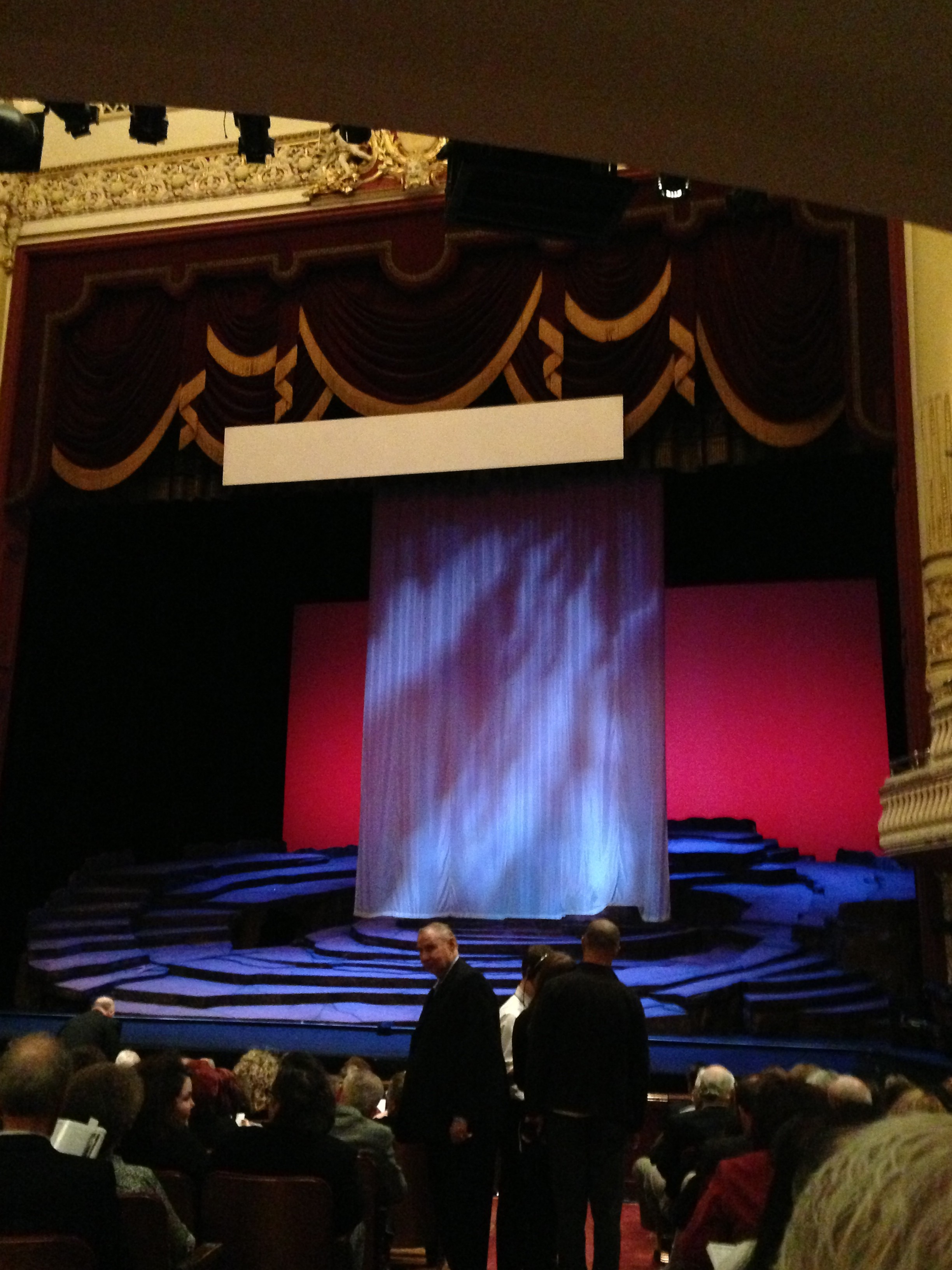 I was intrigued by the stage, it seemed to slope upwards to the back at an odd – almost ridiculously steep – angle. I wondered how the performers would be able to move around the stage, but Sara! pointed out that it broken up into smaller steps and, thus, make it easier to maneuver.